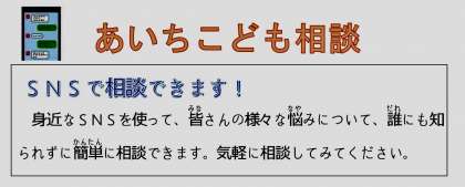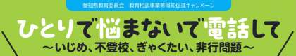 「あいちこども相談」・「一人で悩まないで相談しましょう!」・「ひとりで悩まないで電話して」(愛知県教育委員会)