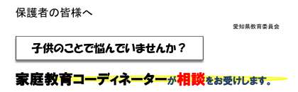 愛知県教育委員会による 家庭教育相談支援事業のご案内です。