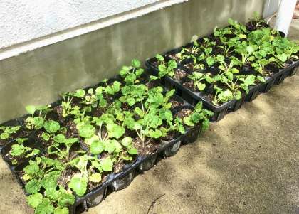 ポットで育ったサクラソウは、再びプランターに戻します。