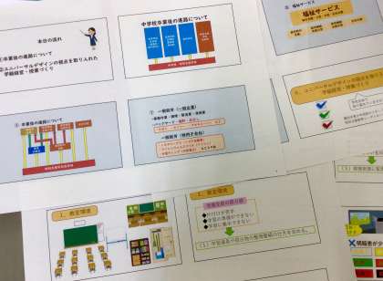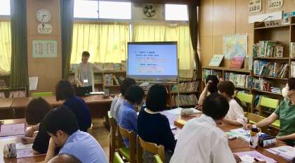 特別支援教育コーディネーターが中心となって、特別な支援を要する子どもたちの中学校卒業後の進路や、ユニバーサルデザインを取り入れた学級経営・授業づくりについて学びました。