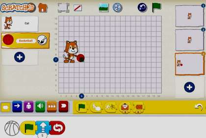 組み合わせを考えて、キャラクターを動かしながら、とても楽しく学べます。