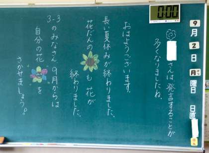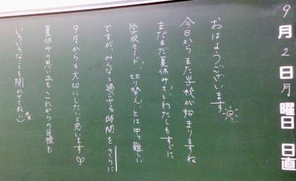 9月2日(月)の梅坪小学校(2)黒板メッセージ