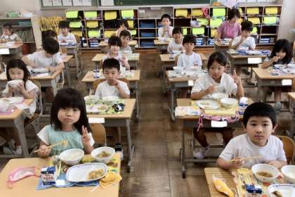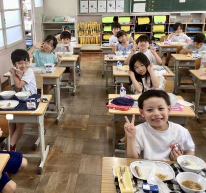 9月3日(火)の梅坪小学校(5)1年生の給食風景