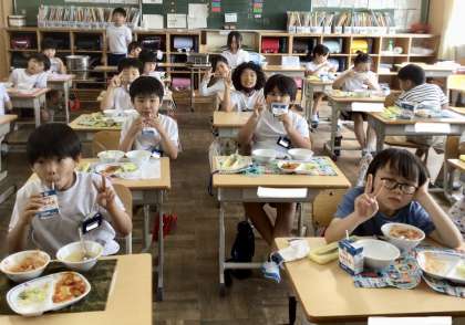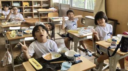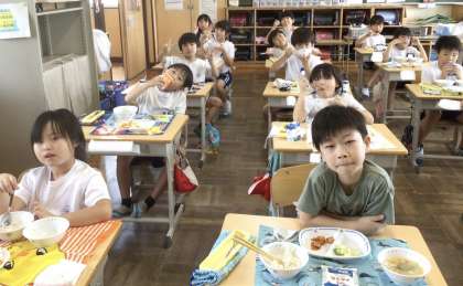 9月4日(水)の梅坪小(6)2年生の給食風景