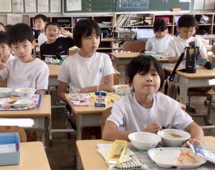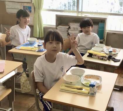 9月4日(水)の梅坪小(12)2年生の給食風景