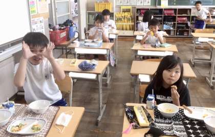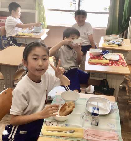 9月5日(木)の梅坪小(6)3年生の給食風景