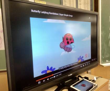 タブレットからつないだ電子黒板の視覚支援が 子どもたちの興味感心を高めていました。