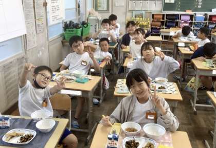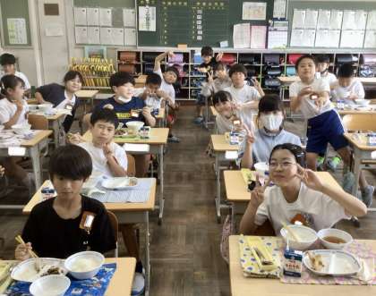 9月6日(金)の梅坪小(4)4年生の給食場面です!
