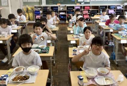9月6日(金)の梅坪小(8)4年生の給食場面です!