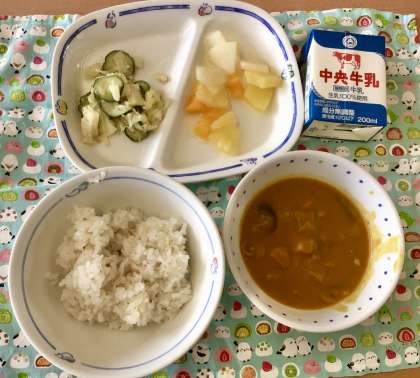 9月10日(火)の梅坪小(4)やったー、カレーだ!