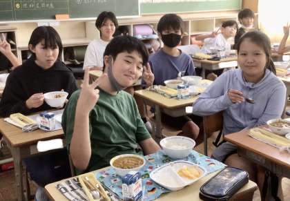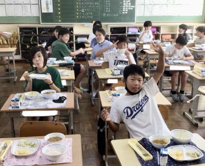 9月10日(火)の梅坪小(7)6年生の給食風景
