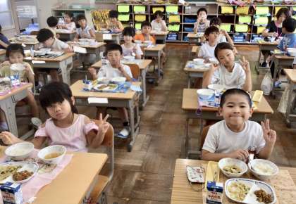 9月11日(水)の梅坪小(14)1年生の給食風景