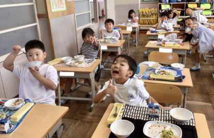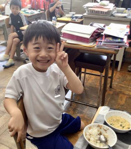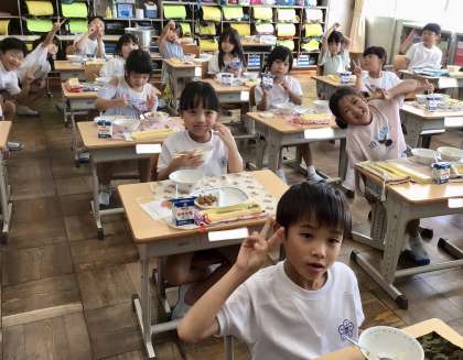 9月11日(水)の梅坪小(19)1年生の給食風景