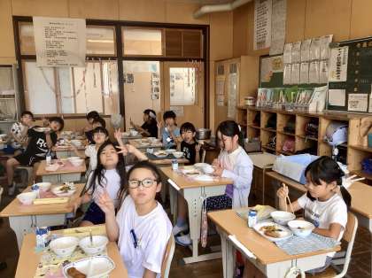 9月12日(木)の梅坪小(10)2年生の給食風景です!