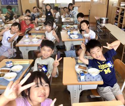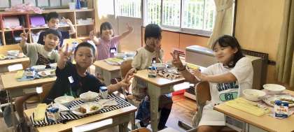 9月12日(木)の梅坪小(11)2年生の給食風景です!