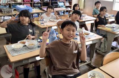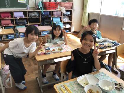 9月12日(木)の梅坪小(12)2年生の給食風景です!