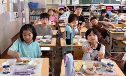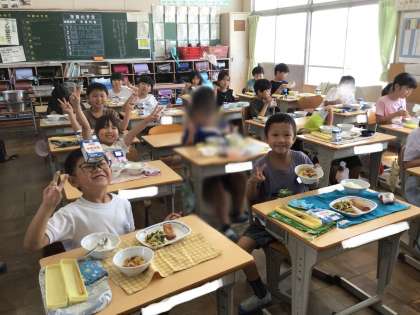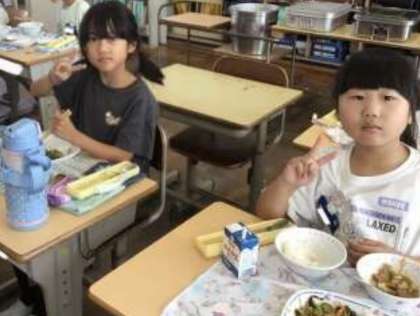 9月12日(木)の梅坪小(13)2年生の給食風景です!