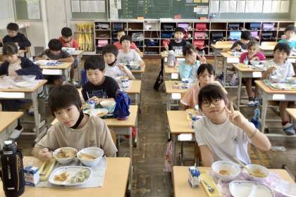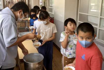 9月17日(火)の梅坪小(10)4年生の給食風景