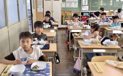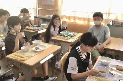 9月18日(水)の梅坪小(7)5年生の給食風景