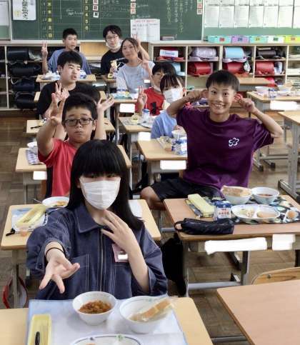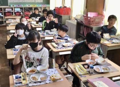 9月19日(木)の梅坪小(6)6年生の給食風景