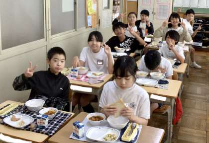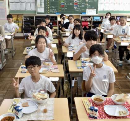9月19日(木)の梅坪小(7)6年生の給食風景