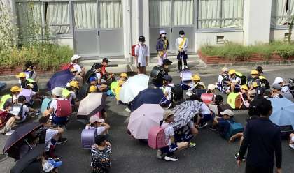 厳しい残暑の中、子どもたちは安全最優先で帰っていきました!