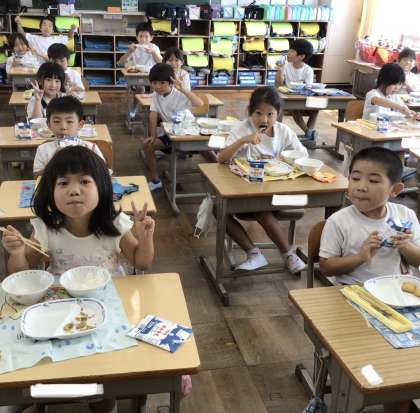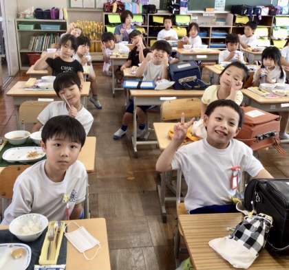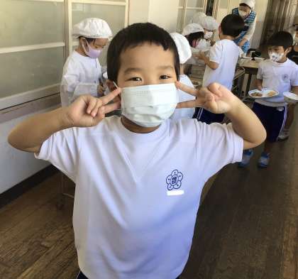 9月20日(金)の梅坪小(6)1年生の給食風景です!
