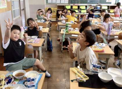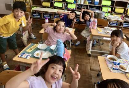 9月20日(金)の梅坪小(10)1年生の給食風景です!
