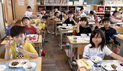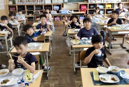 9月25日(水)の梅坪小(10)2年生の給食風景