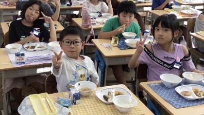9月25日(水)の梅坪小(15)2年生の給食風景