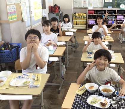 9月26日(木)の梅坪小(8)3年生の給食風景
