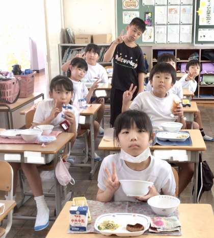 9月26日(木)の梅坪小(11)3年生の給食風景