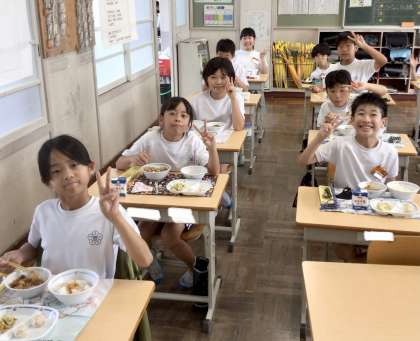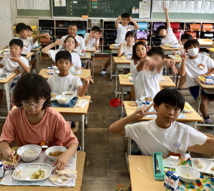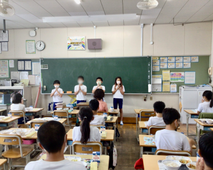 9月27日(金)の梅坪小(8)4年生の給食風景