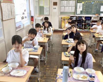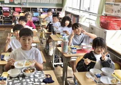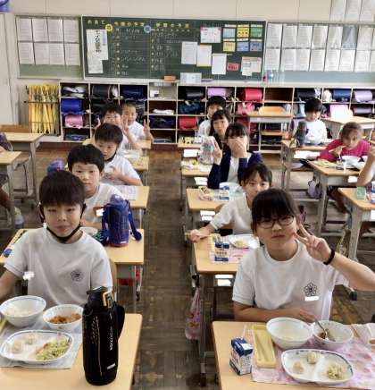 9月27日(金)の梅坪小(10)4年生の給食風景