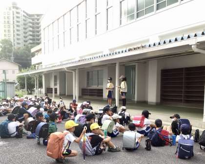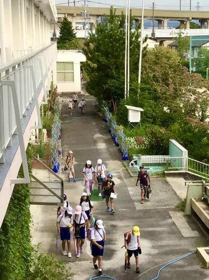 本校では、暑さ対策の一環として 下校時刻にすばやく帰れるように、分散型の下校を継続しています。