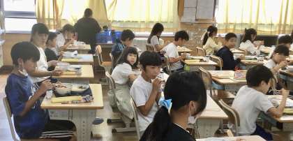 9月30日(月)の梅坪小(9)5年生の給食風景