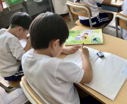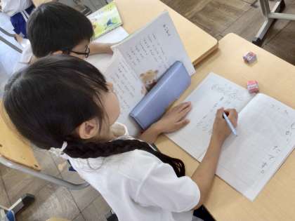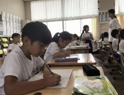 姿勢にも気をつけて、集中して取り組んでいるところに、1年生の成長を感じます。
