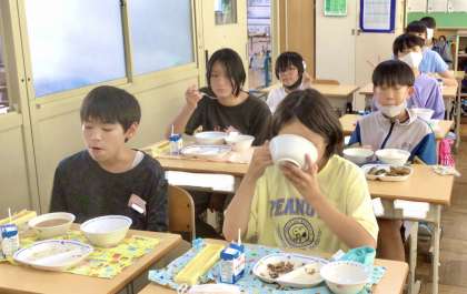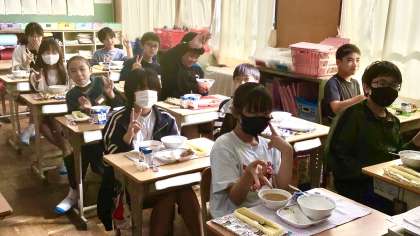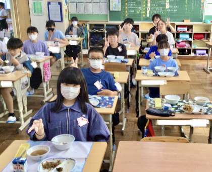 10月1日(火)の梅坪小(10)6年生の給食風景