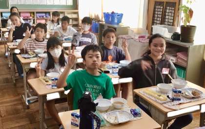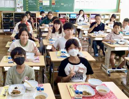 10月1日(火)の梅坪小(11)6年生の給食風景