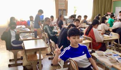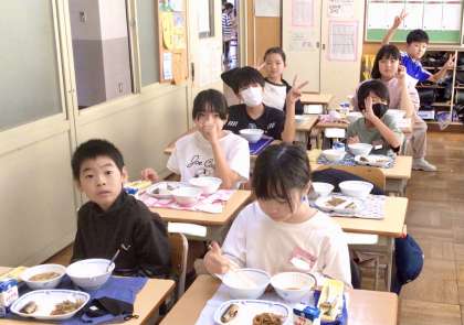 10月1日(火)の梅坪小(12)6年生の給食風景