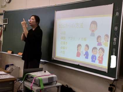 手話、口話について、みんなで体験する場もあり、子どもたちは楽しみながら学ぶことができました。