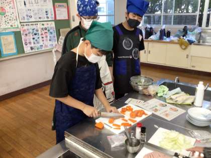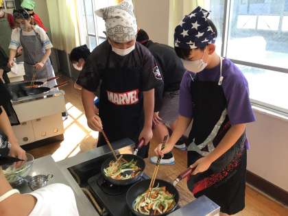今日は6年2組で調理実習を行いました。手際よく、いろどりいためを作ることができました。