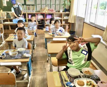 10月4日(金)の梅坪小(7)2年生の会食風景です!