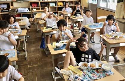 10月4日(金)の梅坪小(9)2年生の会食風景です!