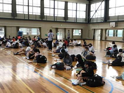 場所を体育館に移して、学年集会で各自荷物チェックをしました。