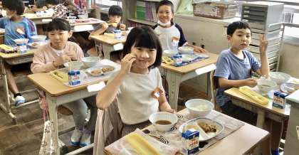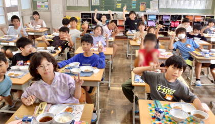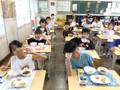 10月8日(火)の梅坪小(9)4年生の給食風景