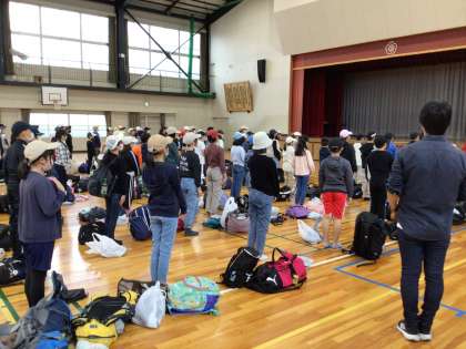 今日から1泊2日のキャンプが始まります。出発式を行い、元気に学校を出発しました。