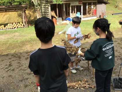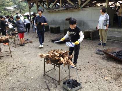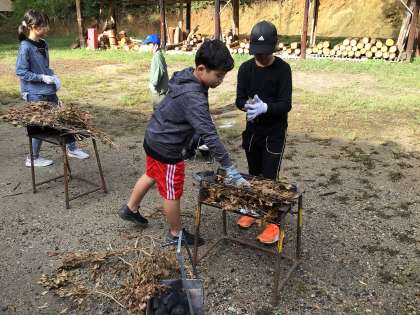 野外炊事、焼き台の準備です。