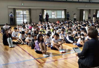 校長先生のお話では、舞台からフロアーに降りて、各学年の頑張ったこと、成長したと思ったことを伝えました。