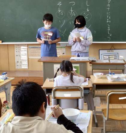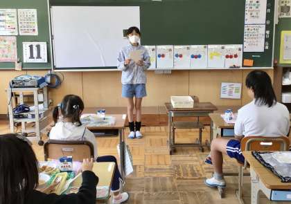給食中に給食委員の皆さんが 各教室を回って、来週から始まる「もぐもぐキャンペーン」についてPRに来てくれました!